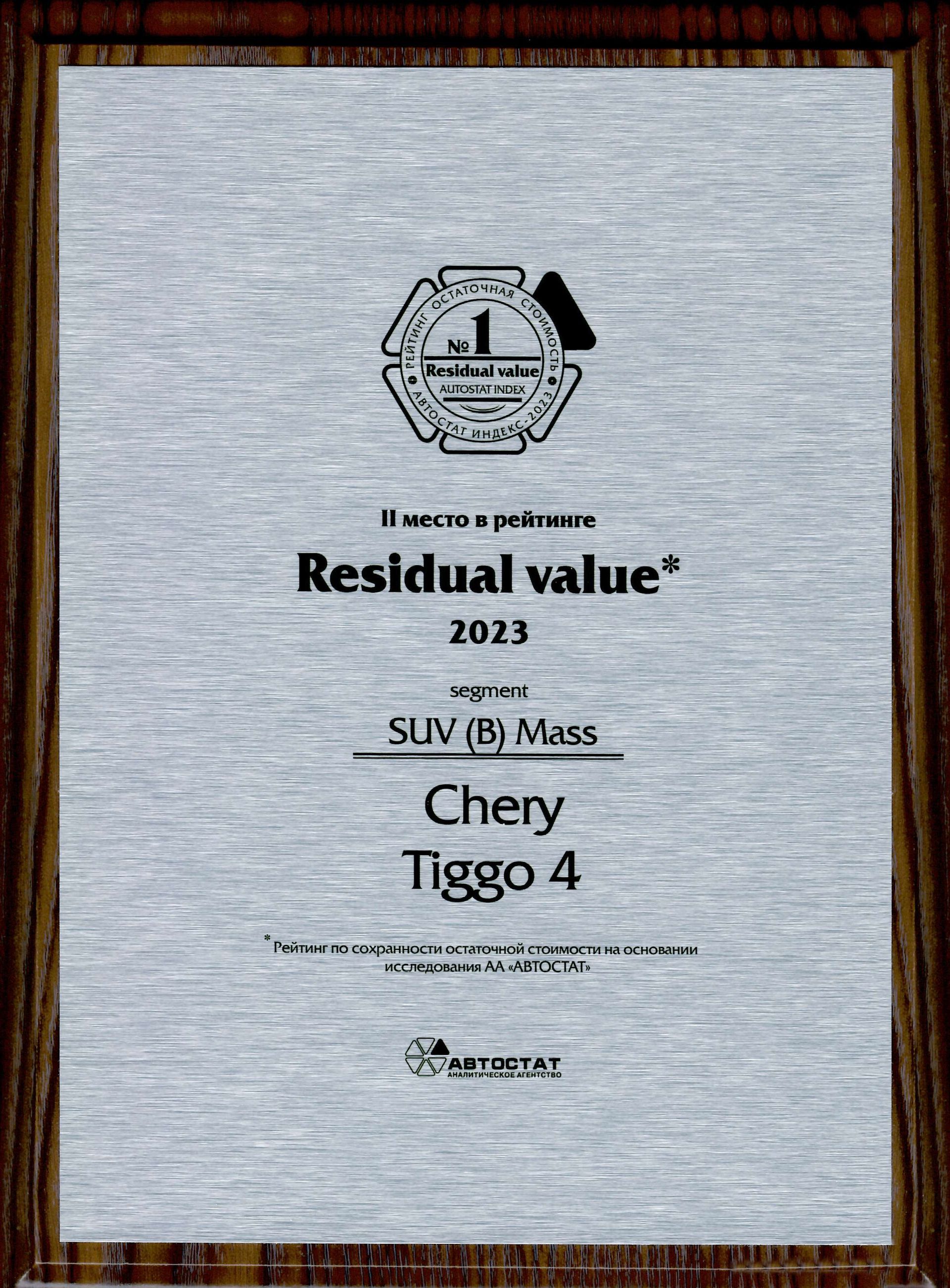Кроссовер CHERY TIGGO 4 вошел в ТОП-3 лидеров в сегменте SUV (B) по сохранности остаточной стоимости по результатам исследования «АВТОСТАТ».